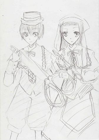 今日は第2ドールの金糸雀の観月さん。 シャーペンでばーって描いたものをザーッとスキャンしました。 かーんなり雑なうえにシャーペンで描いた所為で所々見えにくいです。 いつも描く下書き以下の雑絵です。 第2ドール・金糸雀(カナリヤ) 衣装がかなり間違ってる・・・。 友達に薔薇乙女貸してるんで、衣装が分からなかったんです・・・。(言い訳 日傘が歪だ・・・。 ホントは双子から描きたかったけど、2人も描く気力がありませんでした。 雛苺の裕太から描こうかと迷ったけど、あのふりふりが描けない。 |
