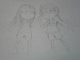 そこまでは順調でした。 が! ノートの提出でノートの落書きを消さずに提出・・・。 どうしよ・・・。 千歳の生足・・・。 朝「消さなぁー」と言ってる時に消せば・・・ッ! 最近、右目が痛いの。 もう、絶対千歳の呪いだよ。 「千歳は絶対恋人募集中だよ」とか言ったから!! まぁ、片耳ピアスにそんな意味があるんですよ・・。 深く聞かないで・・・。 ちょっと自分でもショックなんだよ! つくづく自分が男じゃなくて良かった・・・。 明日は前期中間考査最終日! 一番厭な数学! 色々と公式がわかんないよ! さぁ、毎日恒例になりつつある落書きです。 今回の問題用紙は余白がなくって。 問題と被ってますね。 因みに横の図は減数分裂の図です。 今日は財前クンの女装です。 最初はネコ耳だったんですが、服が思いつかなくて四天の制服に・・・。 制服はうろ覚えですが・・・。 かなりテスト中楽しかったですv |